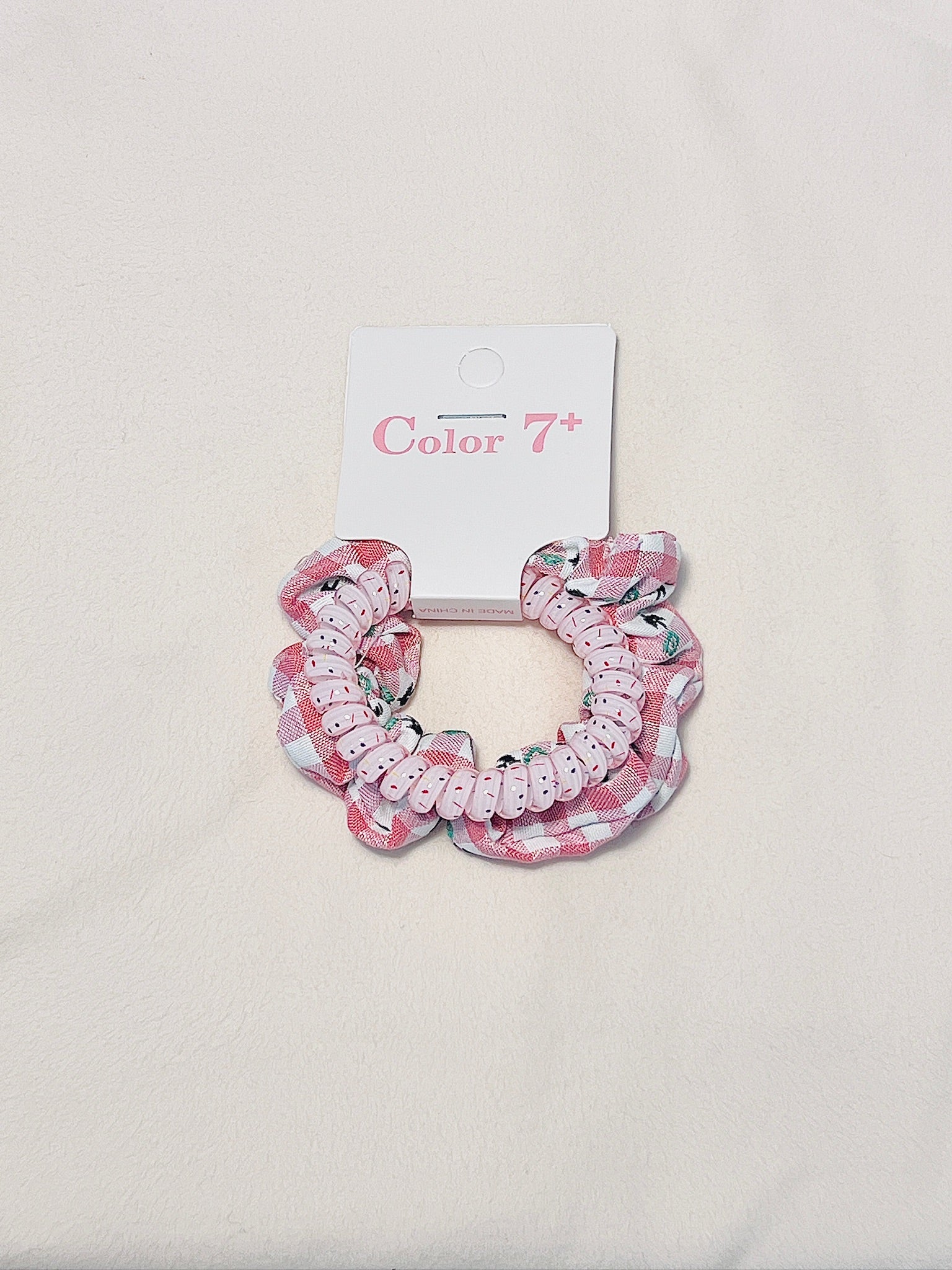 Add a playful flair to your everyday style with the Cherry Glaze Duo. Featuring a classic red gingham scrunchie paired with a spiral hair tie, this duo delivers bold charm with every wear. Perfect for bringing a pop of vibrant red to your hair routine.